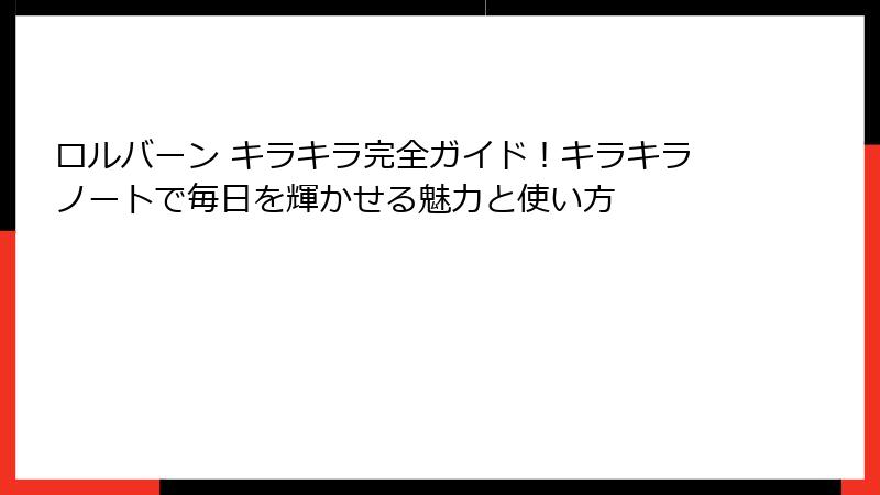 ロルバーン キラキラ完全ガイド!キラキラノートで毎日を輝かせる魅力と使い方