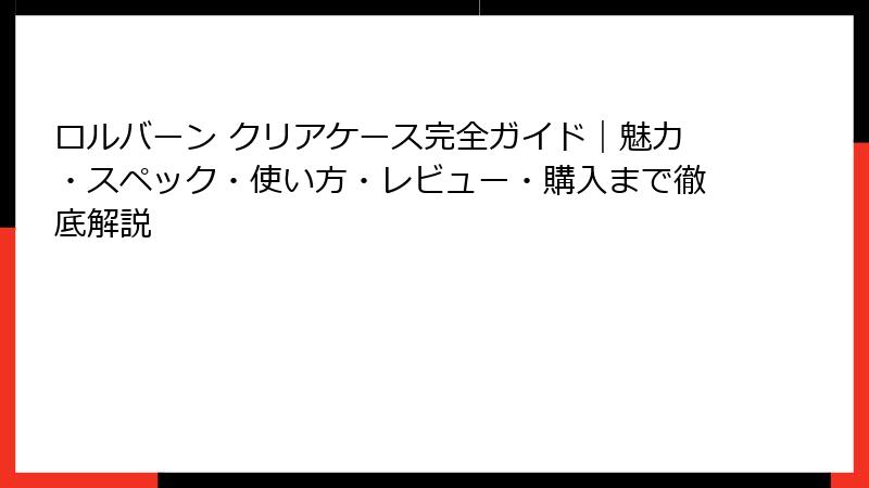 - ロルバーン クリアケースの使い方ガイドと実践メリット|日常を便利にする活用術
