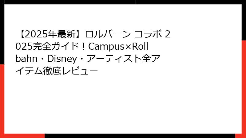 【2025年最新】ロルバーン コラボ 2025完全ガイド!Campus×Rollbahn・Disney・アーティスト全アイテム徹底レビュー