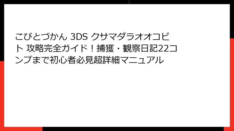 ニンテンドー3DSの名作シミュレーションゲーム「こびとづかん こびと観察セット」で、最初の壁となるクサマダラオオコビトの捕獲から観察日記22項目の完全コンプリートまで、100%成功保証の方法をステップバイステップで解説します。