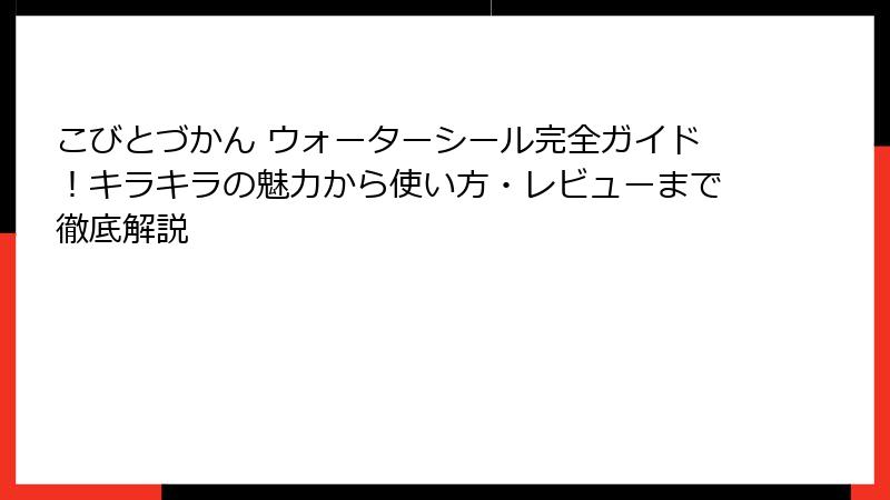 子供たちの想像力を刺激する人気シリーズ「こびとづかん」から登場した、キラキラ輝くウォーターシールについて、今回は徹底的に掘り下げていきます。
