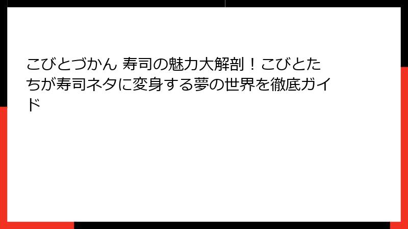 共通点は、身近な素材を活かした創造性で、こびとづかん 寿司はまさにその象徴です。