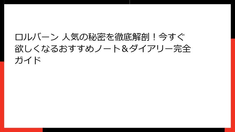 文房具の世界で、ノートやダイアリーと言えば、数多くのブランドが存在しますが、その中でも特に注目を集め続けているのが「ロルバーン」です。
