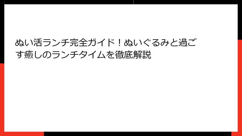 ぬい活ランチのまとめをさらに深めましょう。