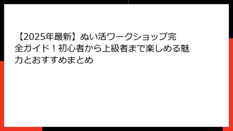 ぬい活ワークショップのまとめガイドは、完全網羅。