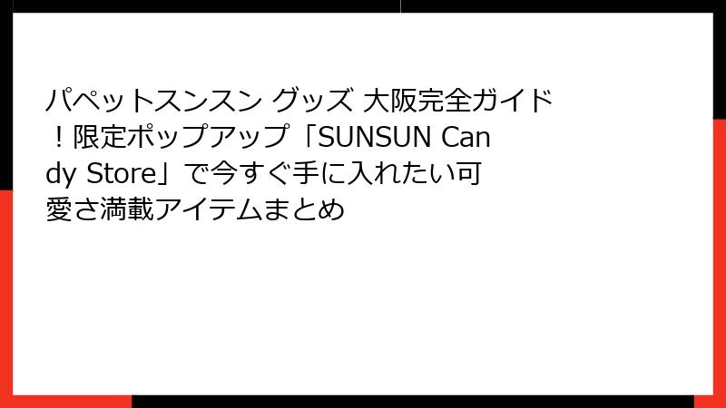 - パペットスンスングッズの魅力満載!大阪ポップアップで販売されるおすすめアイテム徹底レビュー