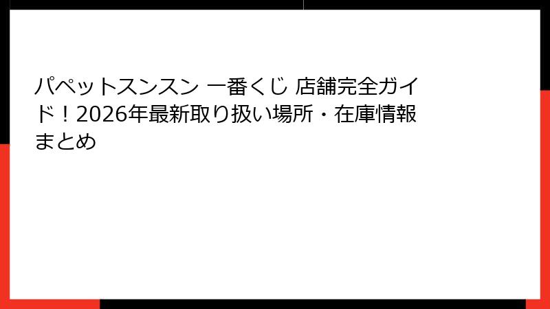 - パペットスンスン一番くじの店舗情報完全ガイド!2026年最新版でどこで買えるかを徹底解説