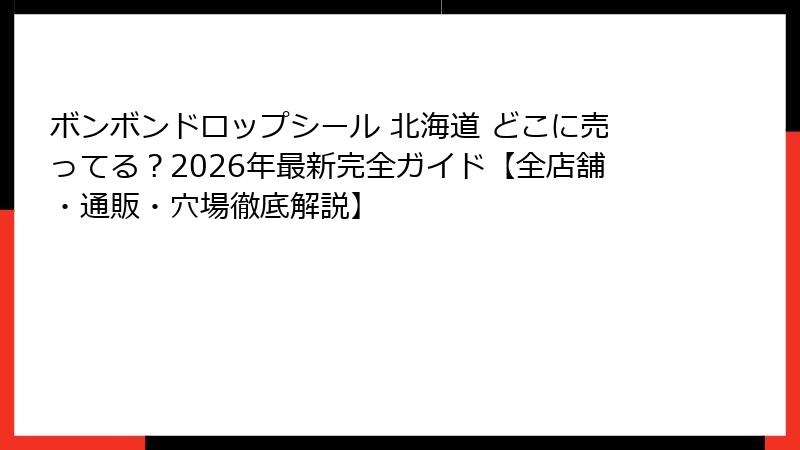 ボンボンドロップシール 北海道 どこに売ってる?2026年最新完全ガイド【全店舗・通販・穴場徹底解説】