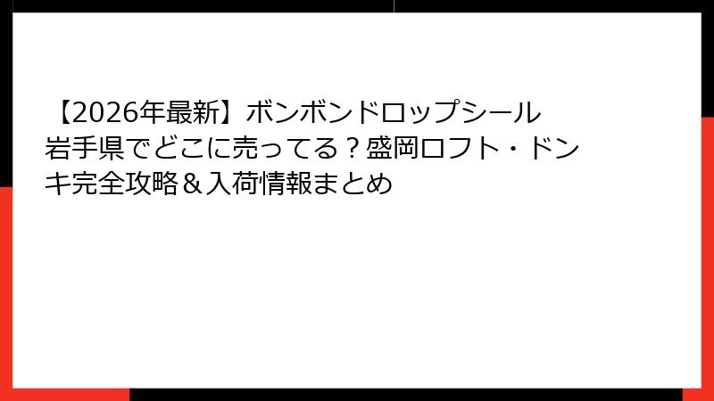 1. ボンボンドロップシール岩手県でどこに売ってる?2026年最新入荷情報まとめ