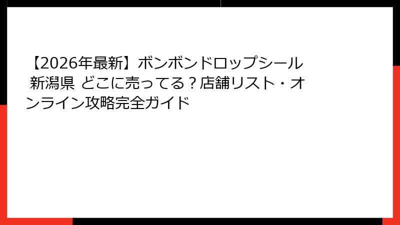 - 新潟県でボンボンドロップシールが買える店舗リスト!エリア別おすすめ店&在庫傾向まとめ