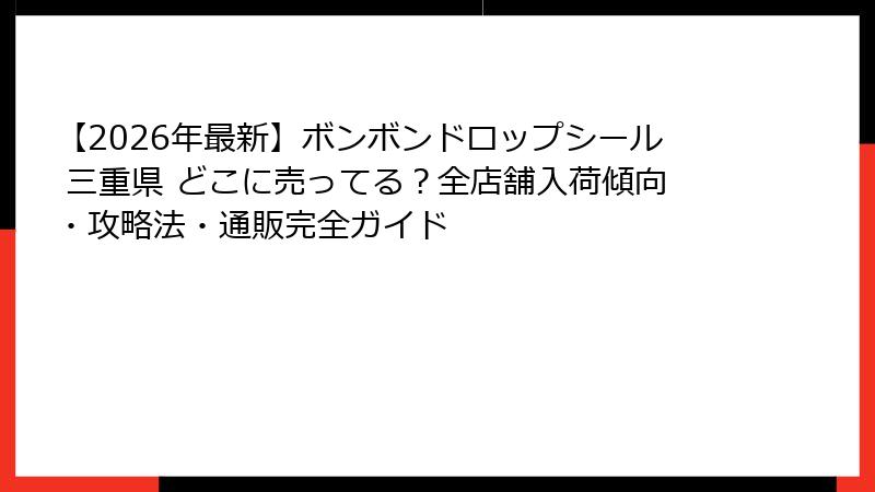 - 【2026年1月最新】三重県でボンボンドロップシールが買える店舗一覧・入荷傾向まとめ