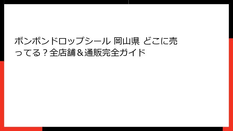 - 岡山市でボンボンドロップシールを確実に探す!おすすめ店舗一覧とアクセス情報