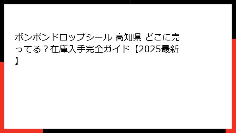 - 高知市内でのボンボンドロップシール探しのトレンド予測