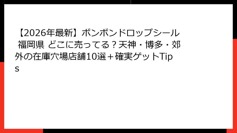 福岡県では、天神エリアのポップアップショップで初登場し、「ボンボンドロップシール 福岡県 どこに売ってる」というクエリが検索エンジンでヒットし始めた頃です。