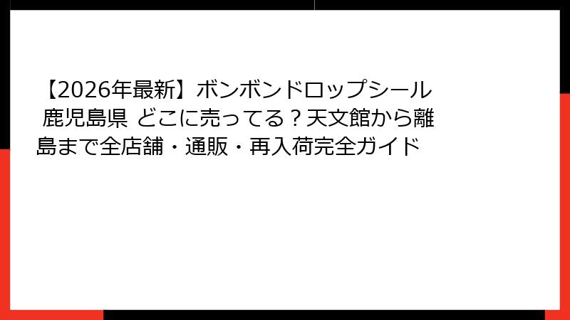 - 再入荷情報と購入Tips!ボンボンドロップシールを鹿児島で確実にゲットする方法