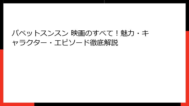 パペットスンスン 映画の魅力再確認から影響事例、SNS人気、未来展望、おすすめポイントまでを詳細にまとめました。