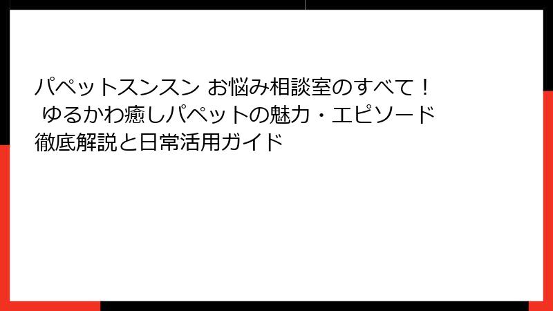 - パペットスンスン お悩み相談室を日常に取り入れる方法! 視聴Tipsと関連コンテンツ