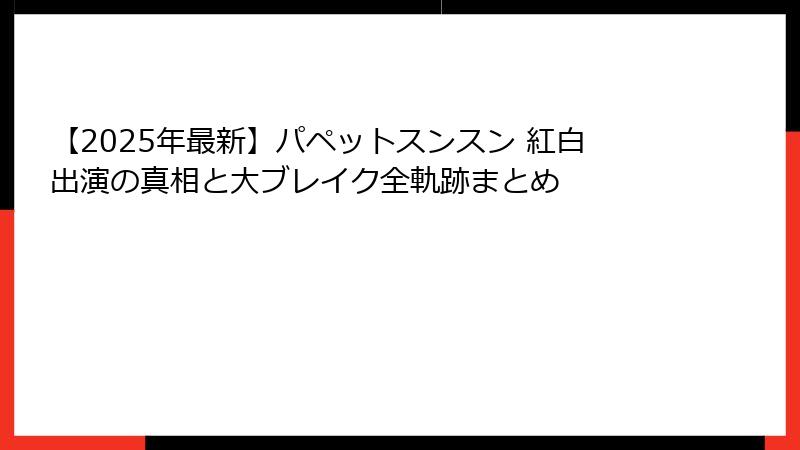 【2025年最新】パペットスンスン 紅白出演の真相と大ブレイク全軌跡まとめ