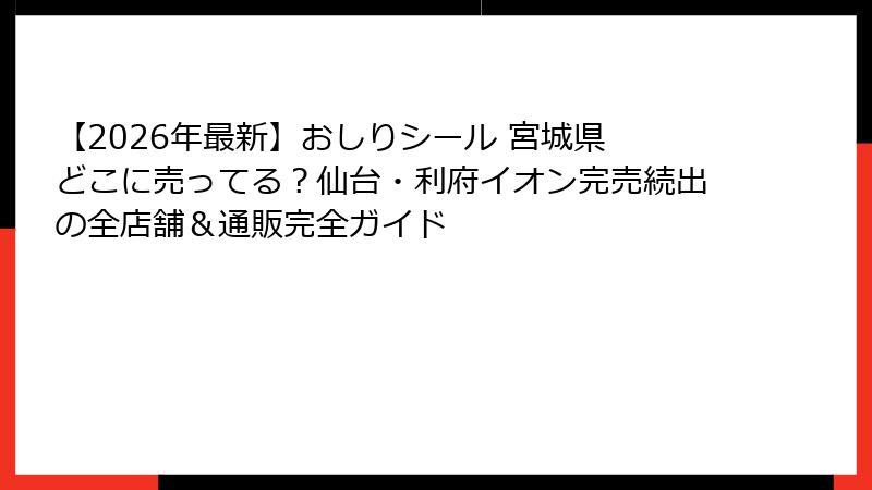 - 宮城県でおしりシールが買える場所まとめ|100均・イオン・書店・雑貨店のカテゴリ別完全ガイド