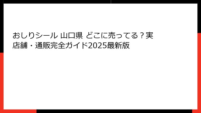 - まとめ:山口県でおしりシールを探すならここからスタート!