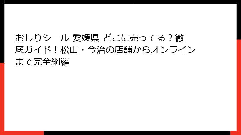 - おしりシール 愛媛県の販売店徹底ガイド!松山・今治・新居浜など地域別でどこに売ってる?