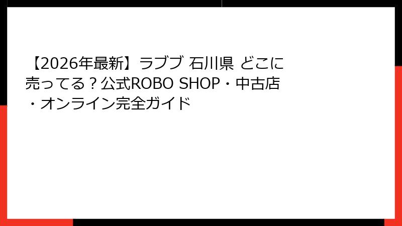 - 石川県への影響:北陸初のROBO SHOP設置が、ラブブの地元人気を後押ししています。