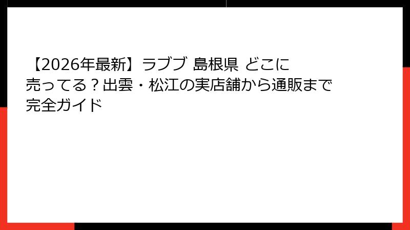- 島根県でラブブが売ってる実店舗一覧!出雲・松江を中心に徹底ガイド