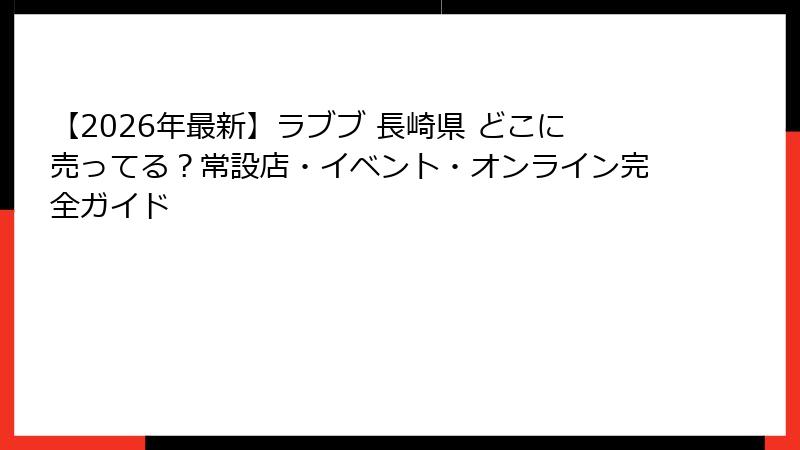 【2026年最新】ラブブ 長崎県 どこに売ってる?常設店・イベント・オンライン完全ガイド