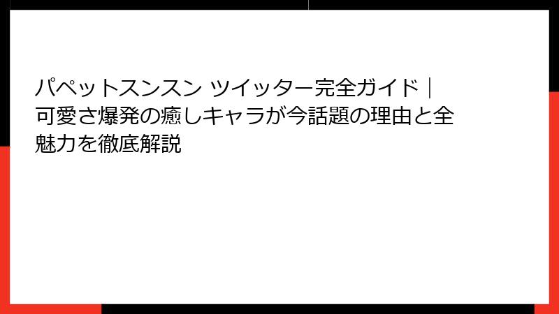 パペットスンスン ツイッターで検索すると、数え切れないほどのファン投稿や公式コンテンツがヒットし、その可愛らしさと癒しの力が一目でわかるでしょう。
