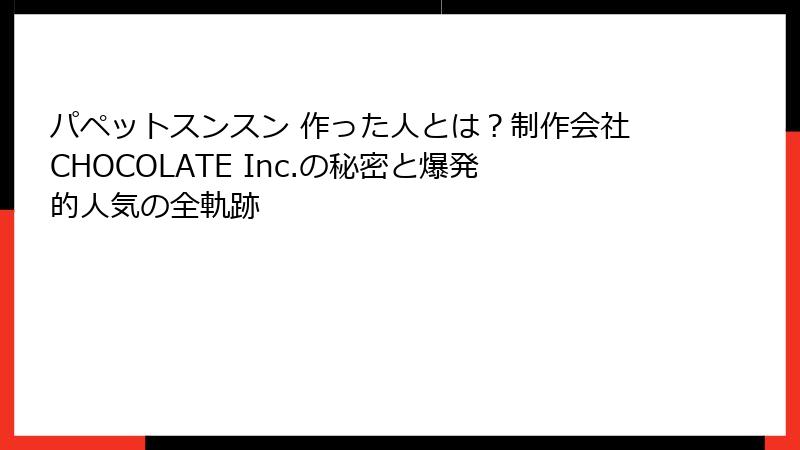 - パペットスンスンを作った人は誰?制作会社CHOCOLATE Inc.の役割と秘密