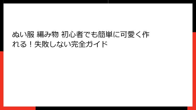 ぬい服 編み物 初心者のための基本的な魅力の紹介
