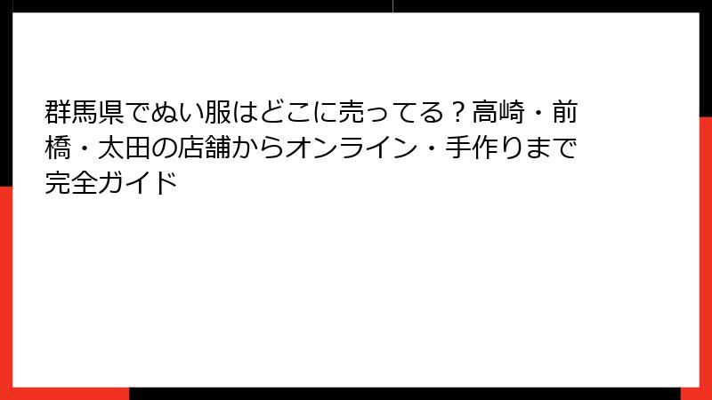 - 群馬県でぬい服が売ってない場合の代替案とオンライン購入ガイド