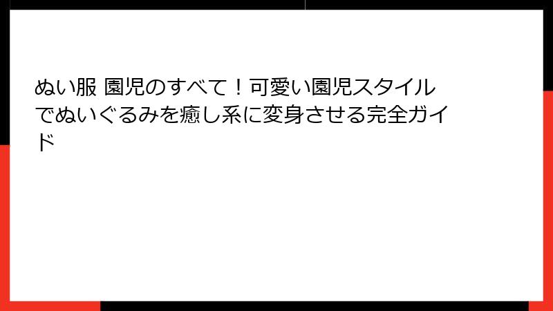 この記事では、ぬい服 園児の基本的な魅力について徹底的に掘り下げていきます。