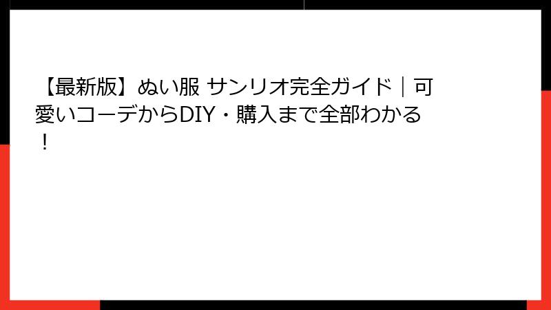 ぬい服 サンリオは、ぬい活を豊かにする鍵です。