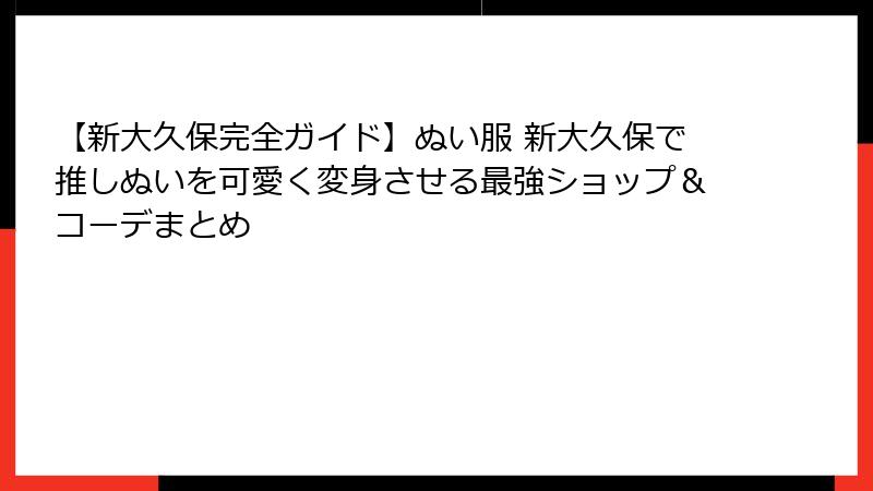 この記事では、ぬい服の基本から新大久保の魅力までを詳しく掘り下げていきます。