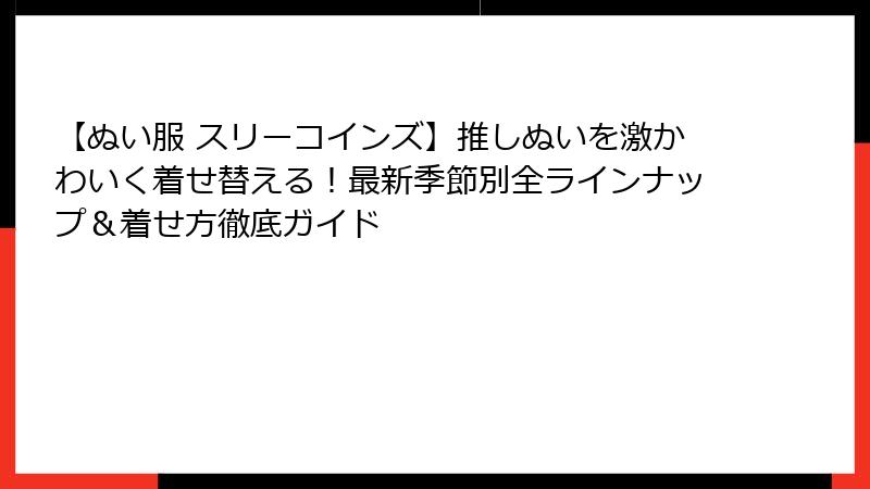 このように、スリーコインズぬい服は推し活の質を根本から高めるアイテムとして欠かせません。