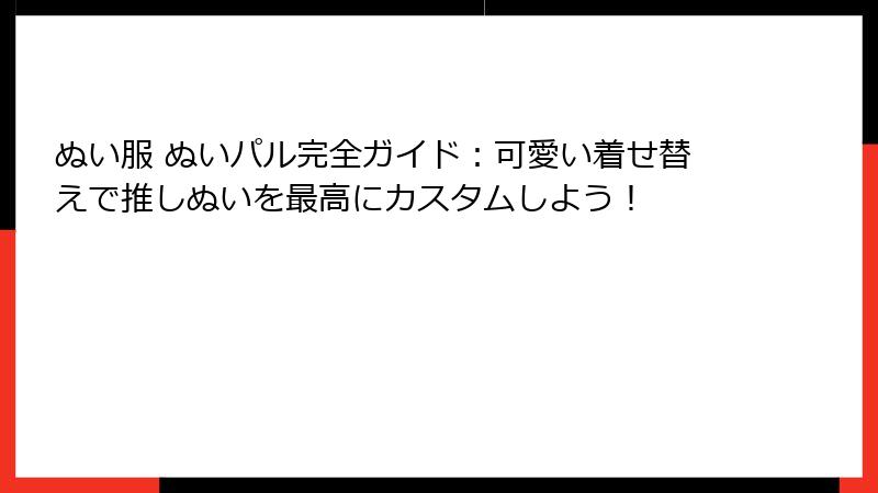 - ぬい服 ぬいパルのカスタマイズ術:手作りからアレンジまで