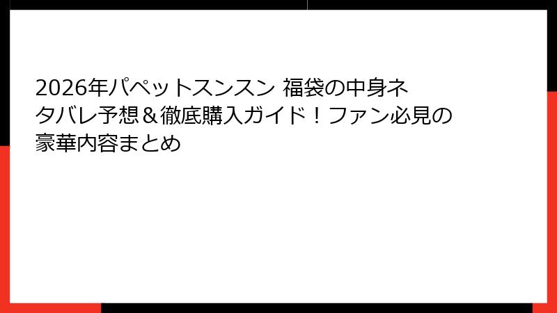 特に2026年版のパペットスンスン 福袋は、数量限定で登場し、さまざまな販売チャネルでファンを魅了しています。