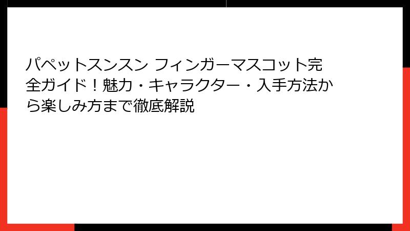 この記事では、そんなパペットスンスン フィンガーマスコットの魅力に徹底的に迫っていきます。