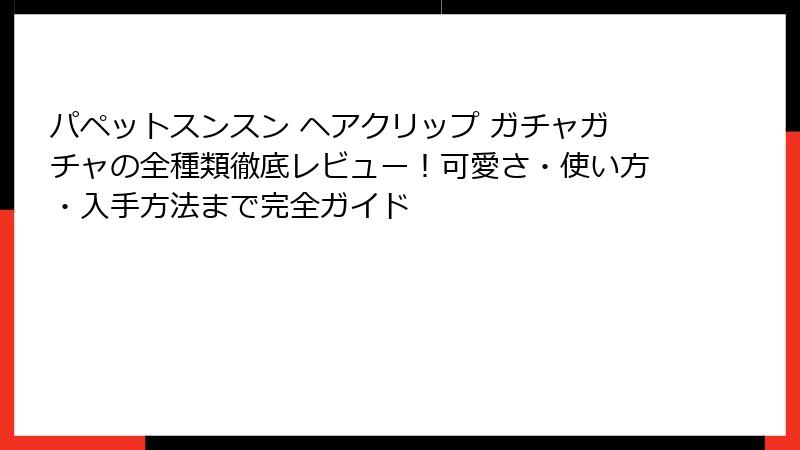 パペットスンスン ヘアクリップ ガチャガチャを探している皆さん、ぜひ最後までお付き合いください。