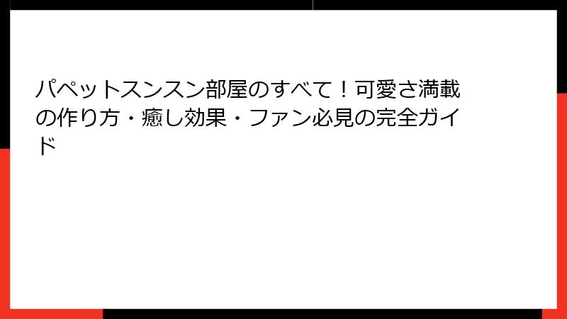 - まとめ:今すぐパペットスンスン部屋を実現して、毎日をスンスン満載に!