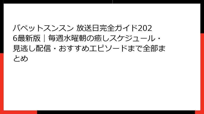 - パペットスンスン 放送日の今後とファン必見情報