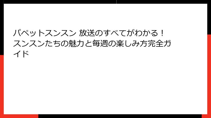 この記事では、パペットスンスン 放送の概要から背景までを徹底的に掘り下げてお届けします。