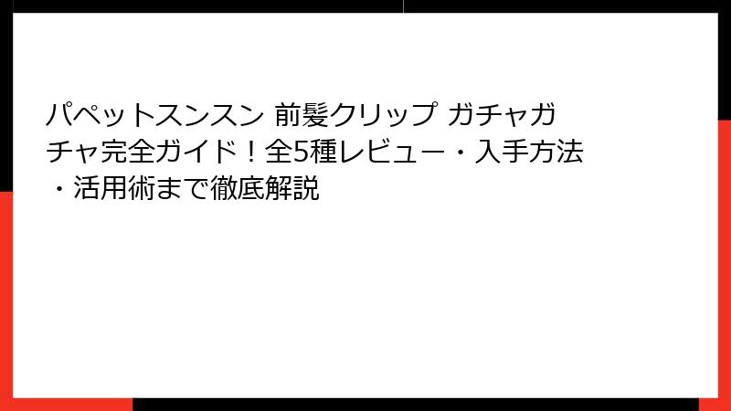 パペットスンスン 前髪クリップ ガチャガチャ完全ガイド!全5種レビュー・入手方法・活用術まで徹底解説