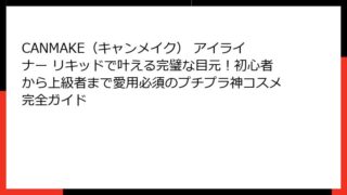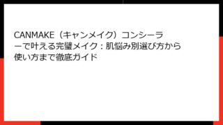 CANMAKEコンシーラーとは?プチプラなのに高性能な理由 CANMAKE(キャンメイク)は、「You Can Make it」をコンセプトに、手頃な価格で高品質なコスメを提供する日本のプチプラブランドとして、若い世代を中心に圧倒的な支持を...