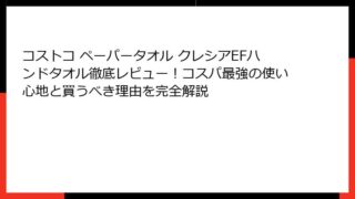 コストコで大人気のペーパータオル「クレシアEFハンドタオル」を徹底解説!日常使いに欠かせない理由 コストコ ペーパータオル クレシアefハンドタオルという検索キーワードでこの記事にたどり着いたあなたは、きっと日常の衛生管理やキッチン作業をよ...