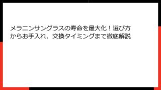 メラニンサングラス 度入りとは? 紫外線対策の新定番アイテムで日常を守ろう 夏の強い日差しの中、外出時に目が疲れたり、眩しさで頭痛を感じたりしたことはありませんか? 現代社会では、紫外線(UV)の増加が深刻な問題となり、目や肌への影響が懸念...