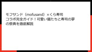 モフサンド(mofusand) モフサンド(mofusand)×くら寿司コラボ完全ガイド!可愛い猫たちと寿司の夢の祭典を徹底解説 モフサンドとくら寿司の初コラボ!可愛い猫たちが寿司の世界に登場する魅力とは? モフサンド(mofusand)とくら寿司のコラボキャンペーンが、ついに明日2026年2月6日からスタートします!このニュースを聞いた瞬間、多くのファンたちが興奮を... 2026.02.05 モフサンド(mofusand)