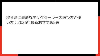 ネッククーラー 寝る時に最適なネッククーラーの選び方と使い方:2025年最新おすすめ5選