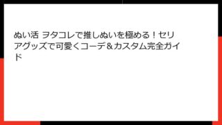ぬい活とガチャガチャの魅力に迫る!初心者でも始めやすいぬいぐるみワールド入門 最近、SNS上で話題沸騰中の「ぬい活 ガチャガチャ」というキーワードを耳にしたことはありませんか?ぬい活とは、ぬいぐるみを相棒のように連れて外出したり、写真を撮っ...